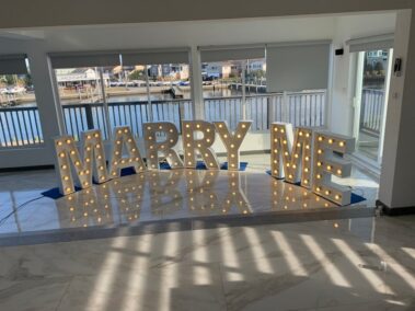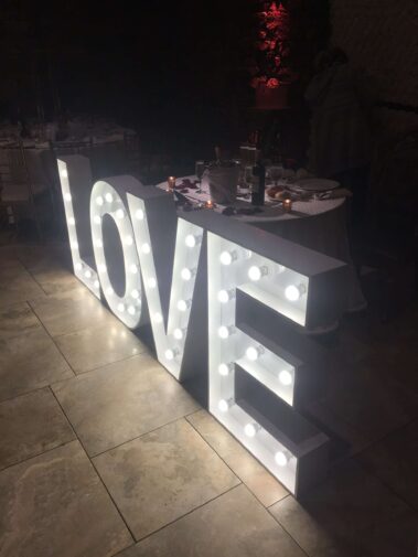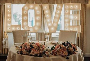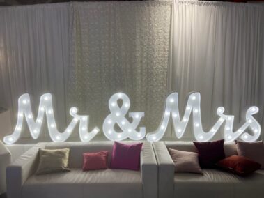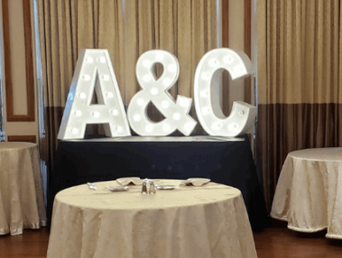 Illuminate your wedding decor with a touch of brilliance! Rent our show-stopping Marquee Letters, available in