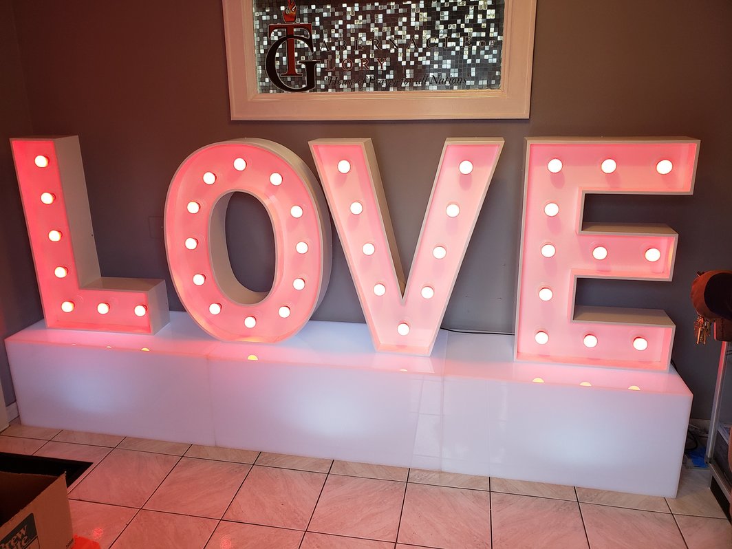 Illuminate your wedding decor with a touch of brilliance! Rent our show-stopping Marquee Letters, available in